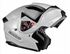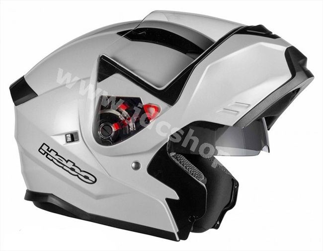 Přilba pro pohodlné cestování s vyklápěcí přední částí se sklem. Navíc připevněn výklopný štítek proti slunečnímu záření.